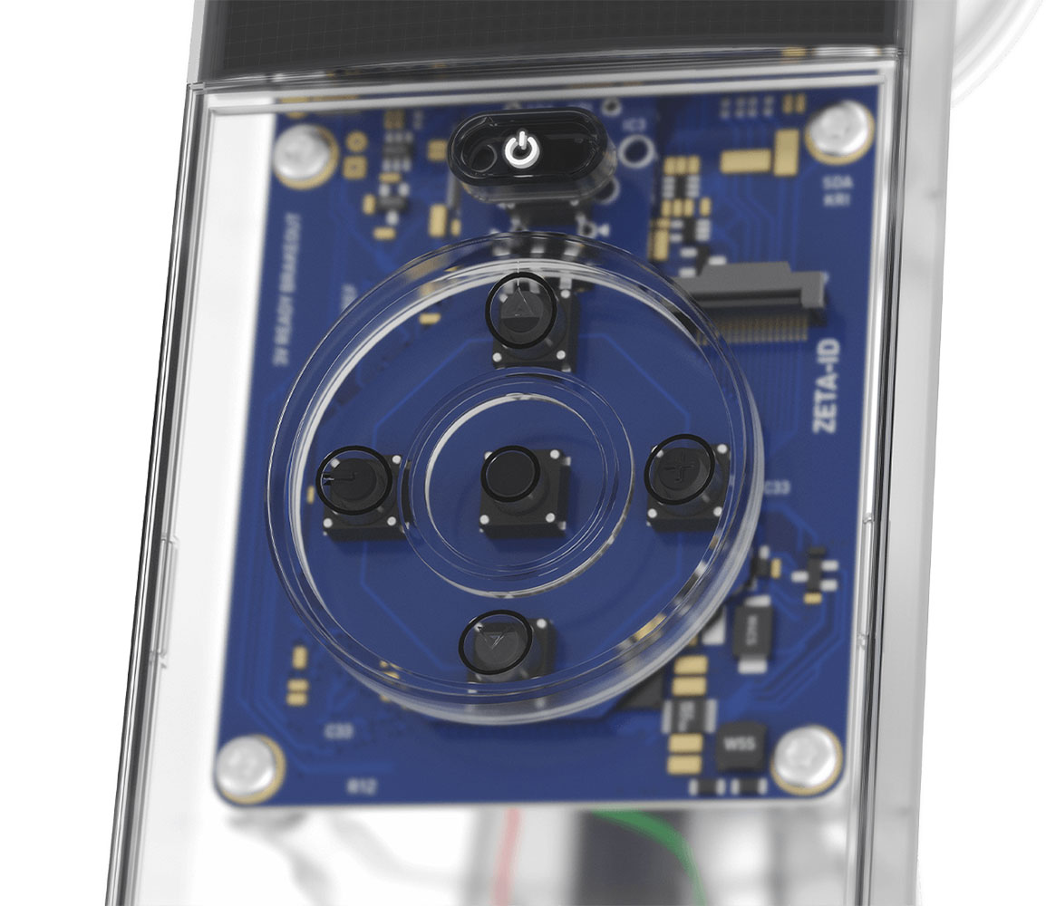 Magnetic charging base, it can also be used as a charging hub. Synchronizes and updates the database of every patient in real time.